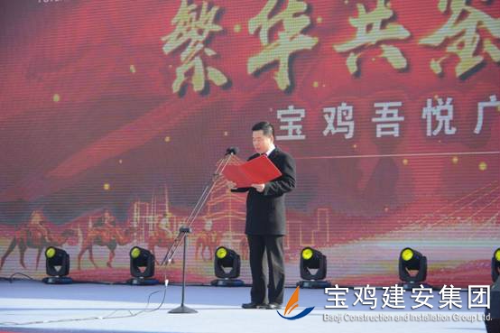 2018年1月16日上午,寶雞新城吾悅廣場(chǎng)項(xiàng)目奠基儀式在高新區(qū)舉行,該項(xiàng)目是繼恒大、碧桂園之后,寶雞高新區(qū)引進(jìn)的又一個(gè)千億級(jí)商業(yè)航母——新城控股集團(tuán)在西北地區(qū)建設(shè)的第二個(gè)一站式綜合廣場(chǎng)。奠基儀式上,公司董事長(zhǎng)景常榮代表施工單位致辭,新城控股集團(tuán)副總裁陸建華代表建設(shè)單位致辭,高新區(qū)黨工委書(shū)記、管委會(huì)主任郝晉升代表政府單位致辭。高新區(qū)管委會(huì)領(lǐng)導(dǎo)、新城控股集團(tuán)領(lǐng)導(dǎo)、寶雞建安集團(tuán)董事長(zhǎng)、寶雞市中小企業(yè)協(xié)會(huì)領(lǐng)導(dǎo)等為項(xiàng)目培土奠基。公司組織管理人員、施工人員共計(jì)300人參加了奠基儀式。