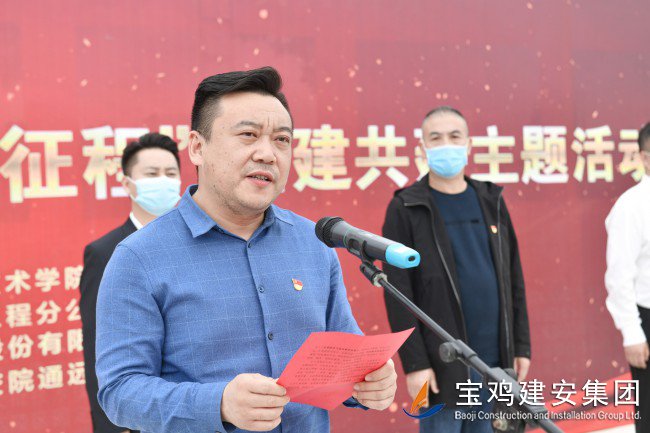 李軍鋒代表參建單位團(tuán)組織作表態(tài)發(fā)言,提出青年是時(shí)代的希望,共青團(tuán)員和廣大青年前赴后繼、勇當(dāng)先鋒,書(shū)寫(xiě)了中國(guó)青年運(yùn)動(dòng)的華章。參建單位將以本次黨建帶動(dòng)團(tuán)建為契入點(diǎn),充分發(fā)揮引領(lǐng)作用,帶領(lǐng)廣大青年職工砥礪奮進(jìn),大道遠(yuǎn)行,以項(xiàng)目建設(shè)發(fā)展為目標(biāo),高質(zhì)量、高標(biāo)準(zhǔn)、高要求完成陜西交通職業(yè)技術(shù)學(xué)院通遠(yuǎn)校區(qū)建設(shè)任務(wù)。