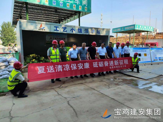 7月18日上午,寶雞高新區(qū)管委會(huì)黨工委委員、管委會(huì)副主任楊海翔,高新區(qū)總工會(huì)主席李廣強(qiáng),區(qū)教育系統(tǒng)黨委書記、教育體育局局長(zhǎng)唐宏,副局長(zhǎng)劉輝等一行領(lǐng)導(dǎo),前往建安集團(tuán)承建的寶雞高新第三幼兒園建設(shè)項(xiàng)目工地,走訪慰問(wèn)一線員工,開展“夏送清涼”活動(dòng)。