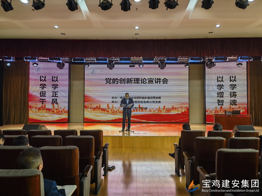 為認(rèn)真學(xué)習(xí)貫徹習(xí)近平新時(shí)代中國(guó)特色社會(huì)主義思想和黨的二十大精神,扎實(shí)深入推進(jìn)主題教育。11月28日下午,在寶雞建安集團(tuán)股份有限公司24樓多功能廳舉辦了一場(chǎng)“學(xué)習(xí)貫徹講話精神、著力推動(dòng)高質(zhì)量發(fā)展”黨的創(chuàng)新理論宣講會(huì)。本次宣講會(huì)由中共寶雞市住房和城鄉(xiāng)建設(shè)局黨組主辦,寶雞建安集團(tuán)股份有限公司黨委承辦,局機(jī)關(guān)和局屬27個(gè)企事業(yè)單位200多名黨員干部參加了宣講會(huì)。 寶雞建安集團(tuán)公司黨委副書記胥永寧在致詞中,感謝局黨組對(duì)寶雞建安集團(tuán)公司的信任和大力支持,介紹了公司經(jīng)營(yíng)生產(chǎn)情況和黨建工作開展情況,并邀請(qǐng)局系統(tǒng)各兄弟單位蒞臨指導(dǎo),加強(qiáng)學(xué)習(xí)交流,共同拓展工作思路,促進(jìn)各項(xiàng)工作更上一層樓。