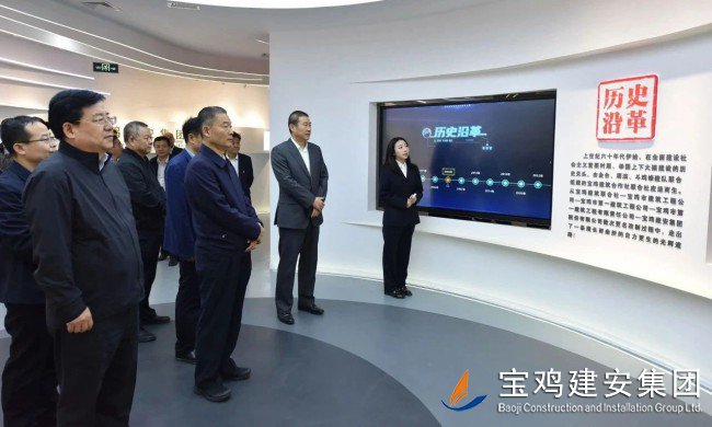 10日上午,調(diào)研組一行前往寶雞建安大廈,觀看企業(yè)宣傳片,參觀了公司23樓體育健身設(shè)施場館及職工文化娛樂配套項目;在建安大廈22樓企業(yè)展廳里,領(lǐng)導(dǎo)們仔細觀看了陳列在此的企業(yè)榮譽成績、代表性工程及歷史實物,詳細了解了寶雞建安集團六十年輝煌歷史,以及集團在推動寶雞城建事業(yè)中所做出的卓越貢獻和重要地位。